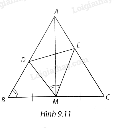 Cho tam giác ABC cân tại A và M là trung điểm của cạnh BC. Lấy các điểm D, E lần lượt trên các cạnh AB, AC sao cho $\widehat{DME}=\widehat{ABC}$.