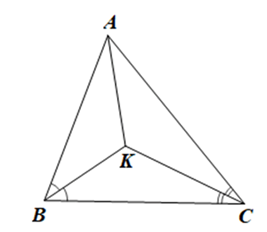 Xét tam giác ABC có hai tia phân giác của góc B và góc C cắt nhau tại K