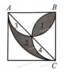 Do đó diện tích tô đậm bằng \(\frac{1}{4}\) diện tích hình tròn bán kính \(AB\) trừ đi diện tích tam giác \(ABC\)