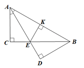 Cho tam giác ABC vuông tại C có ˆCAB=60°CAB^=60° , AE là tia phân giác của góc CAB (E ∈ BC). Gọi D là hình chiếu của B trên tia AE, K là hình chiếu của E trên AB. Chứng minh: