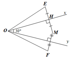 – Cho \(\widehat {xOy} = 30^\circ \) chứng minh: \(\widehat {EOM} = 2\widehat {xOM}\) và \(\widehat {MOF} = 2\widehat {MOy}\) từ đó chứng minh
