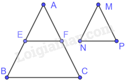 Lại có: \(\frac{{AE}}{{AB}} = \frac{1}{2}\) nên $\Delta ABC\backsim \Delta MNP$ đồng dạng với tỉ số 2 (1)