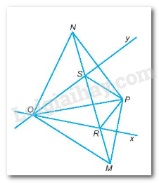 Cho P là một điểm nằm trong góc nhọn xOy. Gọi M là điểm sao cho Ox là đường trung trực của đoạn thẳng PM, gọi N là điểm sao cho Oy là đường trung trực của đoạn thẳng PN. Đường thẳng MN cắt Ox tại R, cắt Oy tại S.Chứng minh tia PO là tia phân giác của góc RPS.