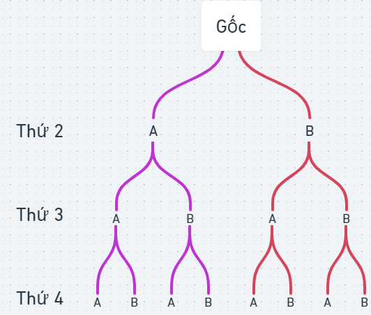 \(G = \left\{ {AAB,ABA,BAA,AAA} \right\}\). Vậy \(P\left( G \right) = \frac{1}{2}\).