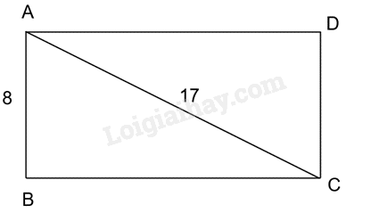 Hãy tính diện tích của một hình chữ nhật có chiều rộng 8cm và đường chéo dài 17cm.