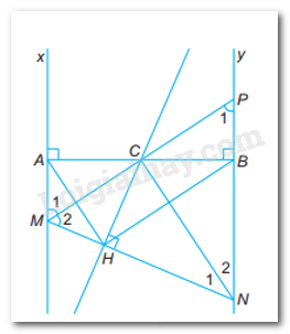 Cho C là trung điểm của đoạn thẳng AB. Gọi Ax, By là hai đường thẳng vuông góc với AB tại A và tại B. Một đường thẳng qua C cắt Ax tại M, cắt By tại P. Điểm N nằm trên tia đối của tia BP sao cho góc MCN là góc vuông. Gọi H là hình chiếu của C trên MN.