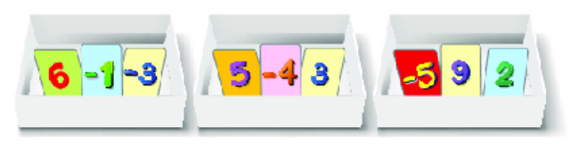 Hộp thứ ba: (-5) + 9 + 2 = 6.
