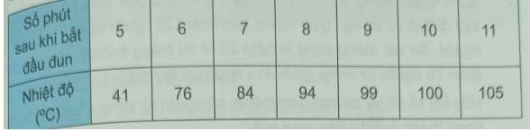 An đun nước và đo nhiệt độ của nước tại một số thời điểm sau khi bắt đầu đun được kết quả như sau: