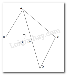 \(\begin{array}{l} \Rightarrow \left\{ \begin{array}{l}AI < AB\\AI < AC\end{array} \right.\\ \Rightarrow 2AI < AB + AC\\ \Rightarrow AI < \dfrac{1}{2}\left( {AB + AC} \right)\end{array}\) (đường vuông góc nhỏ hơn đường xiên)