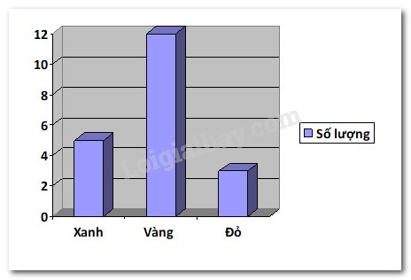 b)    Em hãy lấy một quả bóng từ túi đó 20 lần, sau mỗi lần ghi lại xem quả bóng lấy được có màu gì rồi trả bóng lại túi trước khi lấy lần sau. Hoàn thiện bảng sau: