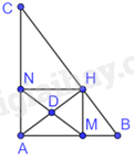 Tam giác HMN và ABC có: \(\widehat {NHM} = \widehat {BAC} = {90^0},\widehat {DMH} = \widehat B\left( {cmt} \right)\)