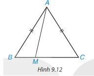 Cho tam giác cân ABC, AB = AC. Lấy điểm M tùy ý nằm giữa B và C. ( H. 9.12)