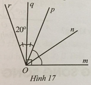 Ở Hình 17 có On, Oq lần lượt là tia phân giác của góc mOp, pOr. Tính số đo mỗi góc mOr, pOq, mOn, nOq.