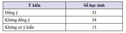 Sau phỏng vấn thăm dò ý kiến của 100 bạn học sinh khối 8 về chủ trương “Xin phép mặc đồng phục riêng của lớp khi đi cắm trại”, bạn Thoa đã thu được bảng thống kê sau: