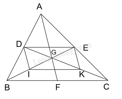 Cho tam giác ABC. Các đường trung tuyến AF, BE và CD cắt nhau tại G. Gọi I, K theo thứ tự là trung điểm của BG và CG