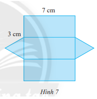 Người ta cắt một tấm bìa để tạo lập một lăng trụ đứng có đáy là tam giác đều với kích thước như Hình 7. Hãy cho biết độ dài các cạnh đáy và chiều cao của hình lăng trụ đứng.