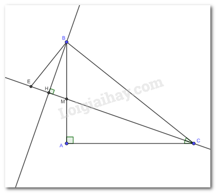 Cho tam giác ABC vuông tại A. Tia phân giác của góc C cắt AB ở M. Từ B kẻ BH vuông góc với đường thẳng CM (H ∈ CM). Trên tia đối của tia HC lấy điểm E sao cho HE = HM.