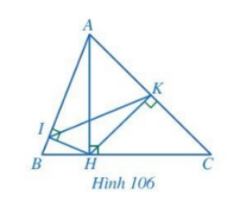 b) Theo câu a ta có \(AB.AI = AC.AK \Rightarrow \frac{{AB}}{{AK}} = \frac{{AC}}{{AI}}\)