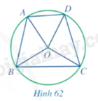 Quan sát Hình 62, hãy cho biết: a) 6 góc ở tâm có hai cạnh lần lượt chứa hai trong bốn điểm \(A,B,C,D\); b) 4 góc nội tiếp có hai cạnh lần lượt chứa ba điểm trong bốn điểm.