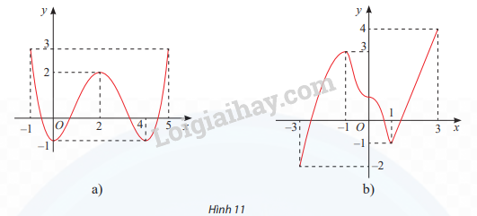 Tìm các khoảng đơn điệu và cực trị của các hàm số có đồ thị cho ở Hình 11.