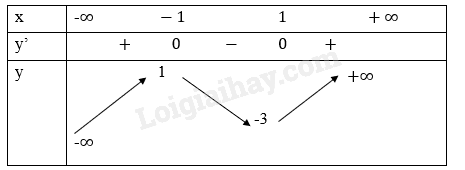 Hàm số có khoảng đồng biến trên mỗi khoảng \(\left( { – \infty ; – 1} \right)\) và \(\left( {1; + \infty } \right)\), nghịch biến trên khoảng (-1;1)