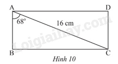 Tính các cạnh của hình chữ nhật ABCD. Biết AC = 16 cm và \(\widehat {BAC} = {68^o}\) (Hình 10).