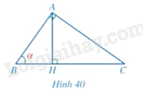 Cho tam giác \(ABC\) vuông tại \(A\) có đường cao \(AH\) và \(\widehat B = \alpha \) (Hình 40).