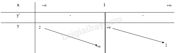 \(y’ = \frac{{ – 3}}{{{{(x – 1)}^2}}} \le 0\forall x \in D\)nên hàm số nghịch biến trên D