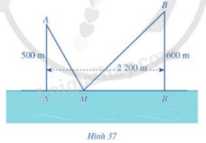 Có hai xã A,B cùng ở một bên bờ sông Lam, khoảng cách từ hai xã đó đến bờ sông lần lượt là AA’ =500m, BB’=600m và người ta đo được A’B’= 2.200m(hình 37). Các kĩ sư muốn xây một trạm cung cấp nước sạch nằm bên bờ sông Lam cho người dân hai xã. Để tiết kiệm chi phí, các kĩ sư cần phải chọn vị trí M của trạm cung cấp nước sạch đó trên đoạn A’B’ sao cho tổng khoảng cách từ hai xa đến vị trí M là nhỏ nhất. Hãy tìm giá trị nhỏ nhất của tổng khoảng cách đó.