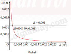 b) Toạ độ giao điểm của đồ thị hàm số với đường thẳng R = 0,001 cho biết khi S = 0,000169\({m^2}\) thì R = 0,001