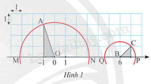 Một trục số được vẽ trên lưới ô vuông như Hình 1. a) Đường tròn tâm O bán kính OA cắt trục số tại hai điểm M và N. Hai điểm M và N biểu diễn hai số thực nào? b) Đường tròn tâm B bán kính BC cắt trục số tại hai điểm P và Q. Hai điểm P và Q biểu diễn hai số thực nào?