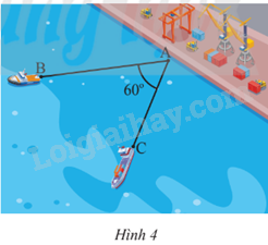 Hai điểm tàu thủy B và C cùng xuất phát từ một vị trí A, đi thẳng theo hai hướng tạo thành một góc 60o (Hình 4). Tàu B chạy với tốc độ 20 hải lí/giờ, tàu C chạy với tốc độ 15 hải lý/giờ. Hỏi sau 1,5 giờ hai tàu B và C cách nhau bao nhiêu hải lí (kết quả làm tròn đến hàng phần trăm)?