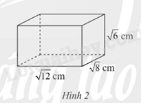 Cho hình hộp chữ nhật có chiều dài \(\sqrt {12} \)cm, chiều rộng\(\sqrt 8 \)cm, chiều cao \(\sqrt 6 \) như Hình 2.