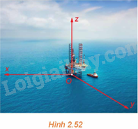 Trong không gian, xét hệ tọa độ Oxyz có gốc O trùng với vị trí của một giàn khoan trên biển, mặt phẳng (Oxy) trùng với mặt biển (được coi là phẳng) với trục Ox hướng về phía tây, trục Oy hướng về phía nam và trục Oz hướng thẳng đứng lên trời (H.2.52). Đơn vị đo trong không gian Oxyz lấy theo kilômét. Một chiếc ra đa đặt tại giàn khoan có phạm vi theo dõi là 30km. Hỏi ra đa có thể phát hiện được một chiếc tàu thám hiểm có tọa độ là (25; 15; -10) đối với hệ tọa độ nói trên hay không? Hãy giải thích vì sao.