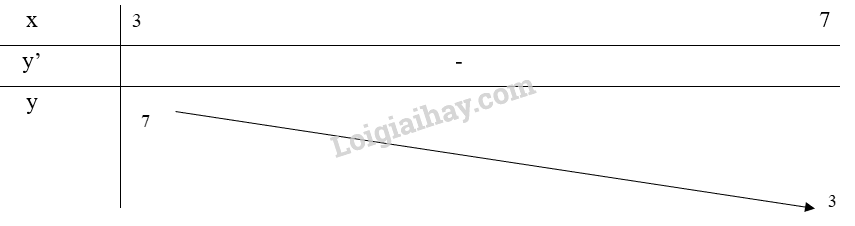 Từ bảng biến thiên, ta thấy \(\mathop {\max }\limits_{[3;7]} y = y(3) = 7\) và \(\mathop {\min }\limits_{[3;7]} y = y(7) = 3\)