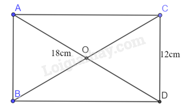Cho hình chữ nhật ABCD có AD = 18 cm và CD = 12 cm. Chứng minh rằng bốn điểm A, B, C, D cùng thuộc một đường tròn. Tính bán kính của đường tròn đó.