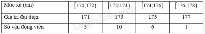 Giá trị trung bình: \(\overline x  = \frac{1}{{20}}\left( {171.3 + 173.10 + 175.6 + 177.1} \right) = 173,5\) (cm)