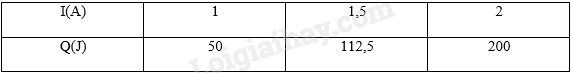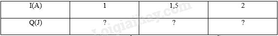 Biết rằng nhiệt lượng tỏa ra trên dây dẫn được tính bởi công thức \(Q = {I^2}Rt,\) trong đó Q là nhiệt lượng tính bằng đơn vị Joule (J) , R là điện trở tính bằng đơn vị Ohm (Ω) , I là cường độ dòng điện tính bằng đơn vị Ampe (A) , t là thời gian tính bằng giây (s) . Dòng điện chạy qua một dây dẫn có R = 10 Ω trong thời gian 5 giây.