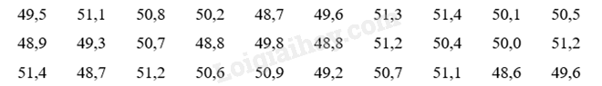 + Giá trị trung bình là: \(\overline x  = (49,5 + 48,9 + 51,4 + 51,1 + 49,3 + 48,7 + 50,8 + 50,7 + 51,2 + \)