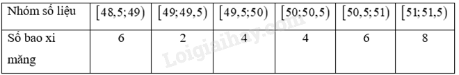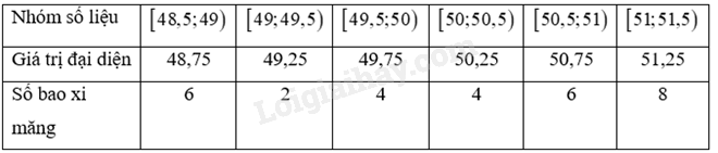 Kiểm tra khối lượng của 30 bao xi măng (đơn vị: kg) được chọn ngẫu nhiên trước khi xuất xưởng cho kết quả như sau: