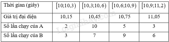 Thời gian chạy tập luyện cự li 100m của hai vận động viên được cho trong bảng sau: