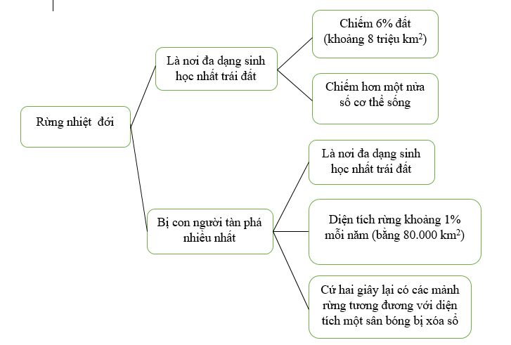 – Số liệu“6% đất (khoảng 8 triệu km2)”,“hơn một nửa số cơ thể sống” được biết tới làm nổi bật sự đa dạng sinh học của rừng nhiệt đới.