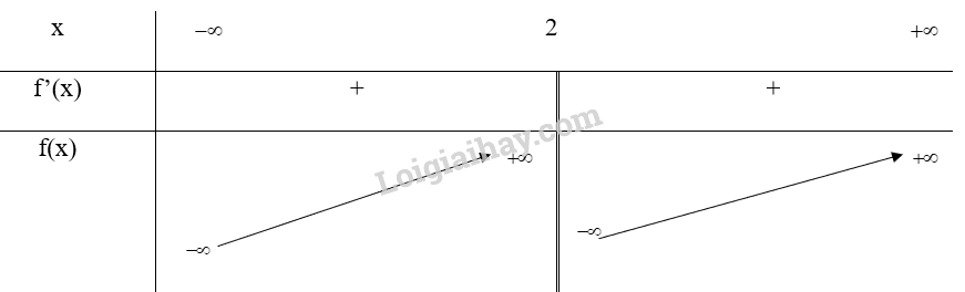 Ta có: \(\left\{ \begin{array}{l}({x^2} – 4x + 6) > 0\forall x \in \mathbb{R}\backslash \{ 2\} \\{(x – 2)^2} > 0\forall x \in \mathbb{R}\backslash \{ 2\} \end{array} \right.\) nên \(y’ > 0\forall x \in \mathbb{R}\backslash \{ 2\} \)