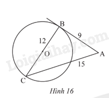 Trong Hình 16, AB = 9; BC = 12; AC = 15 và BC là đường kính của đường tròn (O). Chứng minh AB là tiếp tuyến của đường tròn (O).