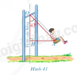 Trong trò chơi xích đu ở Hình 41, khi dây căng xích đu (không dãn) \(OA = 3m\) tạo với phương thẳng đứng một góc là \(\widehat {AOH} = 43^\circ \) thì khoảng cách \(AH\) từ em bé đến vị trí cân bằng là bao nhiêu mét (làm tròn kết quả đến hàng phần trăm)?