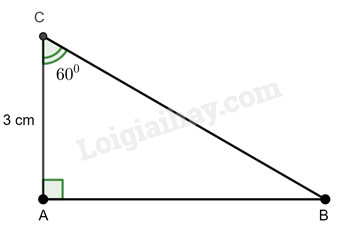 Xét tam giác ABC vuông tại A ta có: \(\tan \widehat C = \frac{{AB}}{{AC}}\) hay \(\tan {60^0} = \frac{{AB}}{3}\) suy ra \(AB = 3.\tan {60^0} = 3\sqrt 3 \) cm.