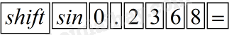 Ta có: \(\sin x = 0,2368\) nên \(x = {13^0}41’51,9” \approx {13^0}42’\)