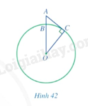 Một người quan sát đặt mắt ở vị trí \(A\) có độ cao cách mực nước biển là \(AB = 5m\). Cắt bề mặt Trái Đất bởi một mặt phẳng đi qua điểm \(A\) và tâm của Trái Đất thì phần chung giữa chúng là một đường tròn lớn tâm \(O\) như Hình 42. Tầm quan sát tối đa từ vị trí \(A\) là đoạn \(AC\), trong đó \(C\) là tiếp điểm của tiếp tuyến đi qua \(A\) với đường tròn \(\left( O \right)\). Tính độ dài đoạn thẳng \(AC\) (theo đơn vị kilômét và làm tròn kết quả đến hàng phần mười), biết bán kính Trái Đất là: \(