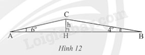 Lúc 6 giờ sáng, bạn An đi xe đạp từ nhà (điểm A) đến trường (điểm B). Khi đi từ A đến B, An phải đi đoạn lên dốc AC và đoạn xuống dốc CB (Hình 12). Biết AB = 762m, \(\widehat A = {6^o},\widehat B = {4^o}\). a) Tính chiều cao h của con dốc b) Hỏi bạn An đến trường lúc mấy giờ? Biết rằng tốc độ khi lên dốc là 4 km/h và tốc độ khi xuống dốc là 19 km/h.