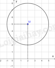 Trên mặt phẳng tọa độ Oxy, cho điểm M(2; 5). Xác định: a) Vị trí tương đối của đường tròn tâm M, bán kính 3 với hai trục Ox và Oy; b) Bán kính của đường tròn tâm M tiếp xúc với trục Ox.